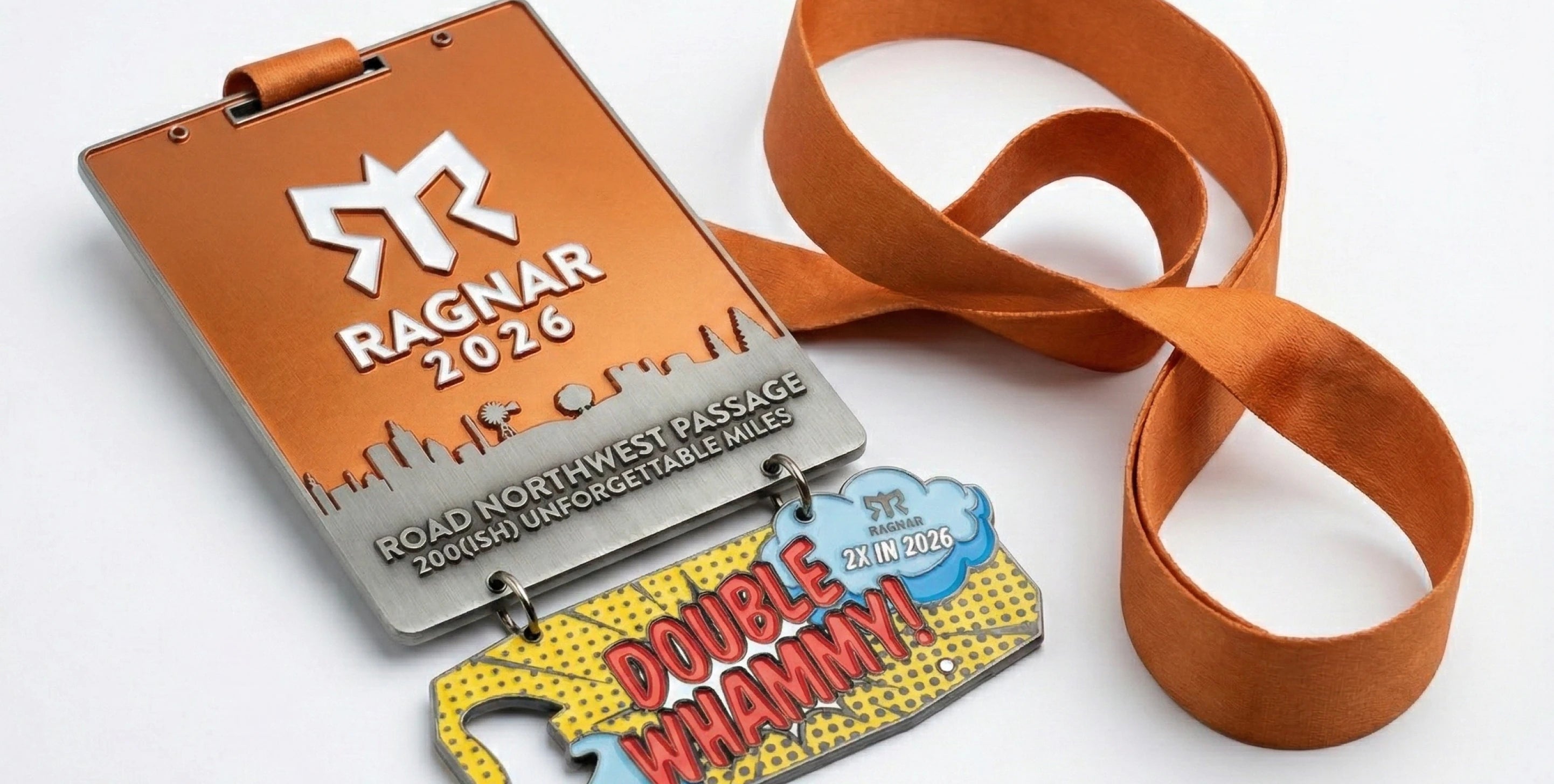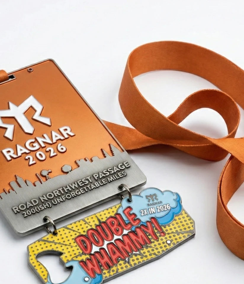 Ragnar Road: Sleek, heavy-duty metal medals built for the grit of the pavement and the shine of the victory lap.